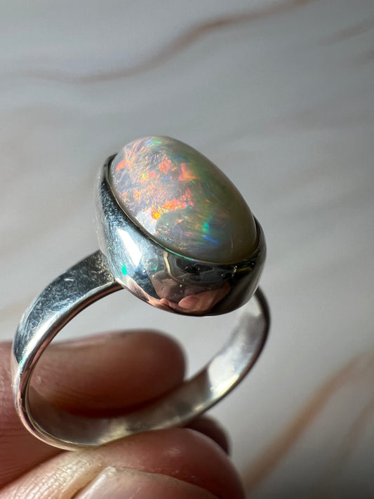 Hand crafted silver ring - size 16 mm - with solid 3.5 carats opal